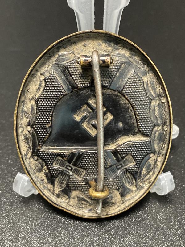 Original unmarked Black wound badge. In good condition with typical wear. Complete with the correct pin, hinge and hook on the reverse.