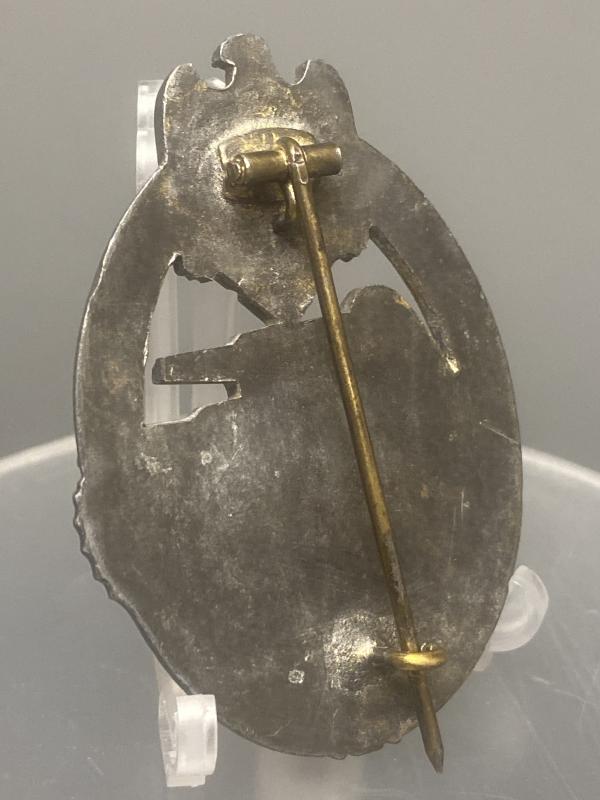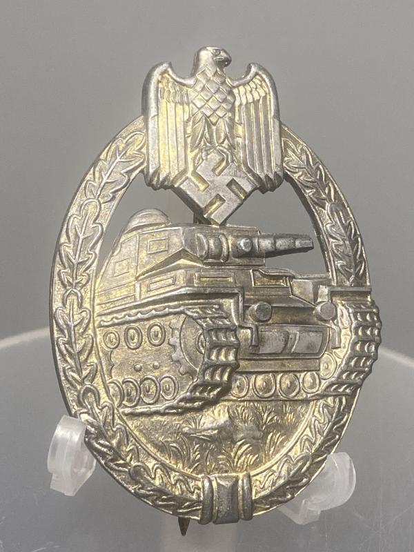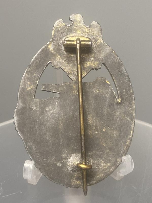 Original German bronze panzer assault badge. Unmarked variant without a some original finish remaining. Complete with pin, hinge and hook on the reverse.