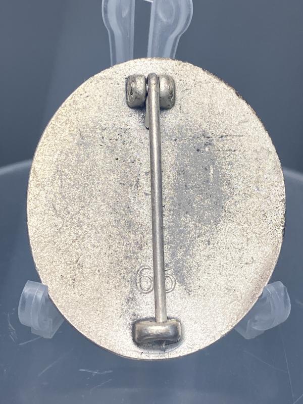 Original silver wound badge produced in Zinc with silver wash finish made by Klein & Quenzer. Good condition retaining high finish.