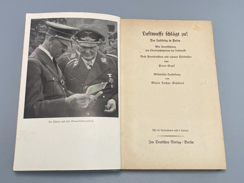 Original 1939 print of Major Lothar Schüttel’s “Luftwaffe Schlägt Zu!” The Airforce in the Poland campaign. In fair condition with all pages present including many images.