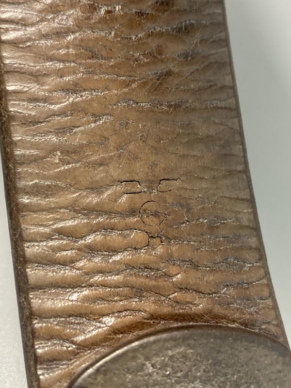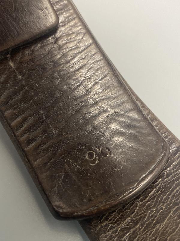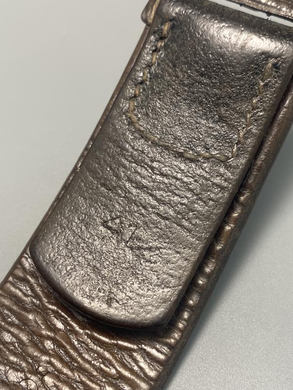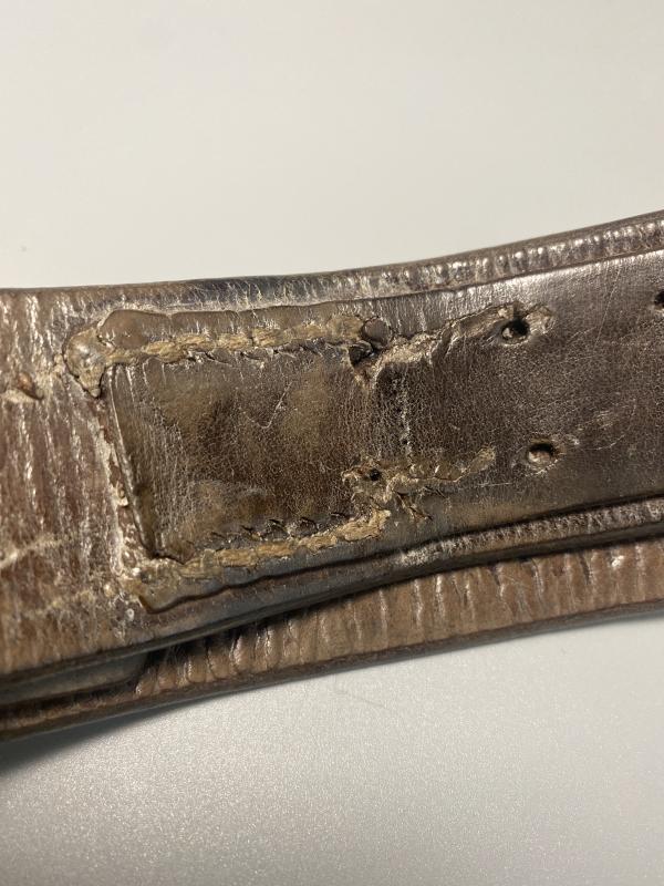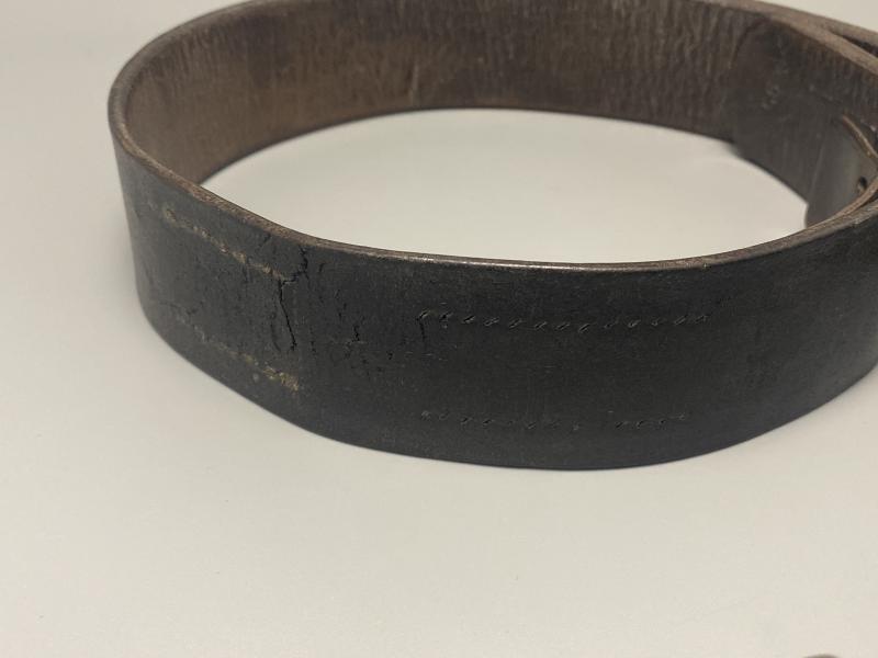 Original German combat black leather belt dated 1941 with Navy inspection mark. Size 95cm. Period repair on the tongue.