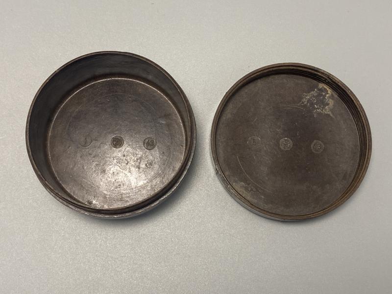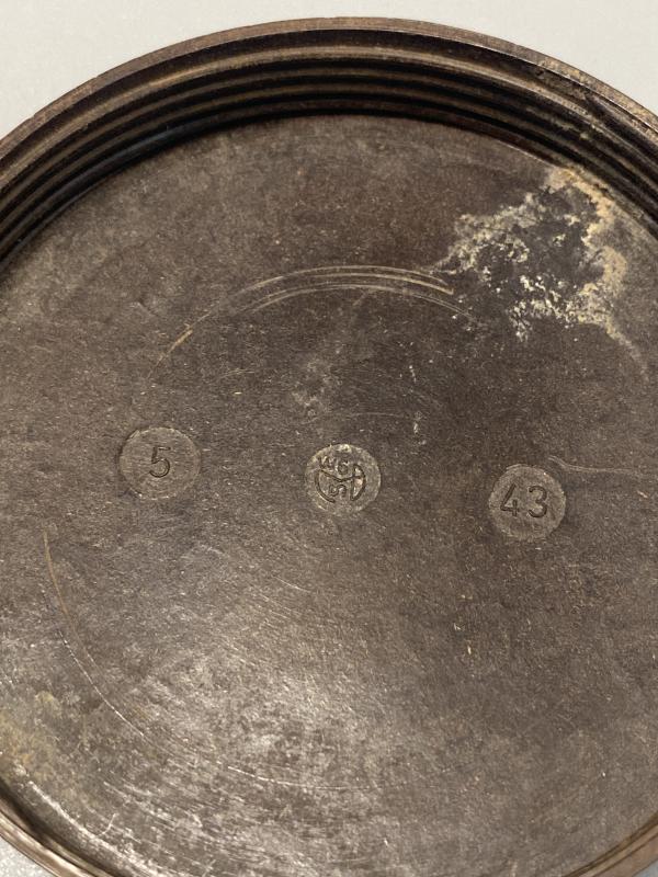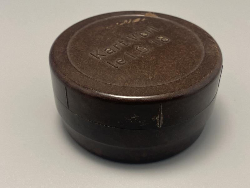 Original container made of Bakerlite for the Le.I.G.18 field gun. Screw cap type, no damage or chips to the Bakerlite. Dated 1943.