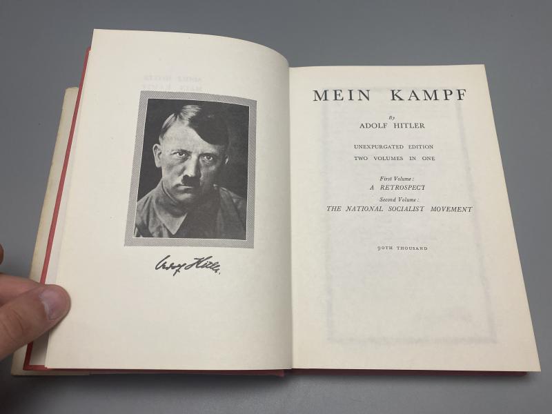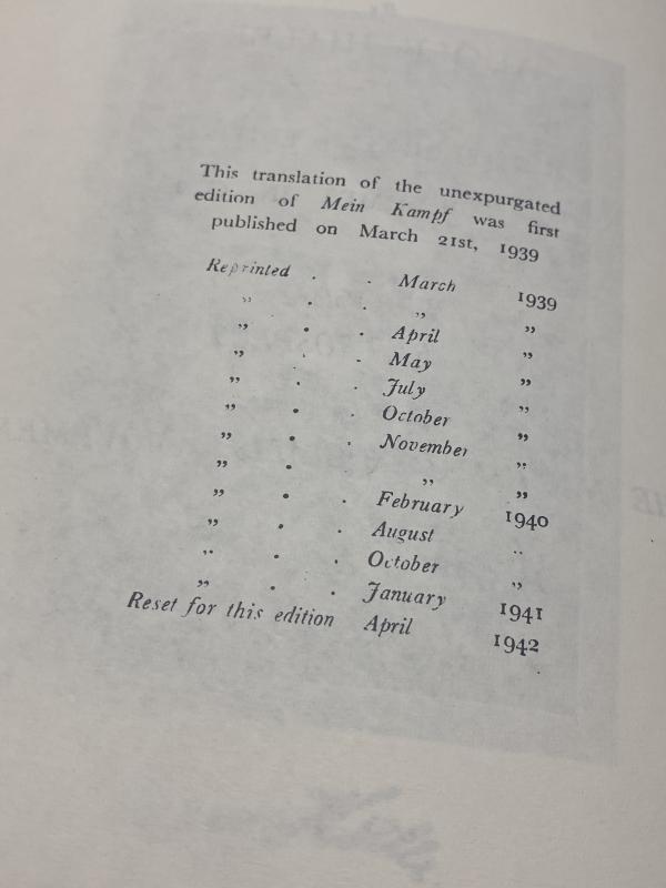 Original 1942 Reset print of Mein Kampf by Adolf Hitler. Translated by James Murphy. Complete with dust jacket. Printed in English.