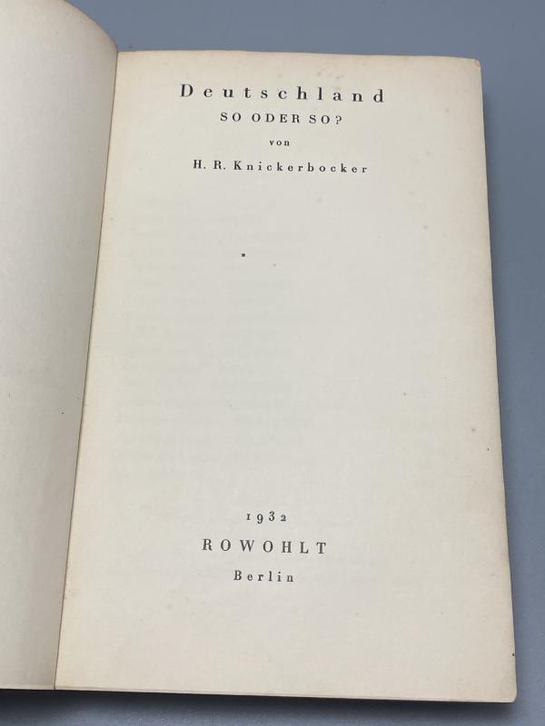 Original 1932 print of H.R.Knickerbocker’s book “Deutschland So Oder So?” Which expores Fascism and Communism in Modern Germany. Printed in German. Some outer damage to the spine as photographed. All pages present.