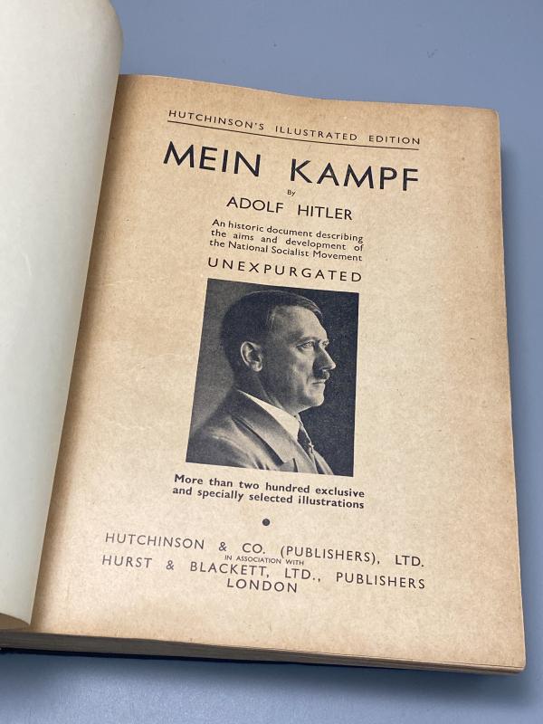 Original Hutchinsons Illustrated Edition of Adolf Hitlers Mein Kampf printed in English with additional photos. Book in good overall condition with all pages present.