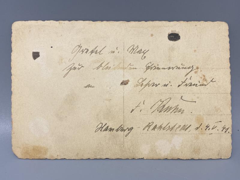 Original Postcard size photograph of a German Officer. Officer is well decorated. Approx 6X4 inch. Dated 1941 on the reverse.