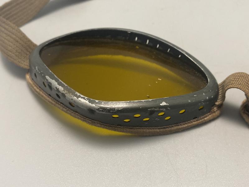 Original WW2 German army Mountain troops sun goggles with tinted lenses and canvas straps. In good used condition, with fully adjustable strap.
