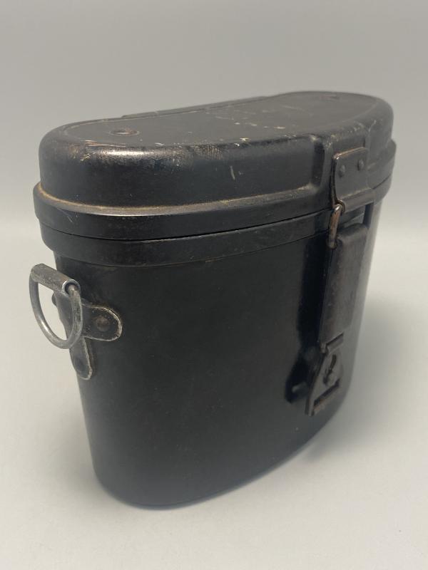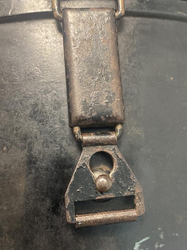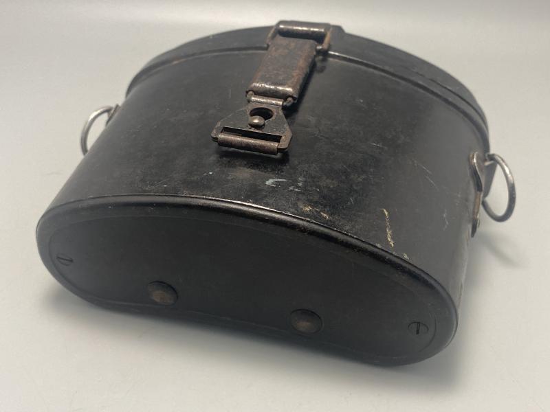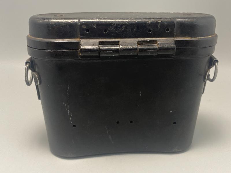 Original German army binocular case made of Bakerlite. Pull system on springs works as it should. Complete with D rings on either side to attach the cross strap. No leather belt loops on the reverse.