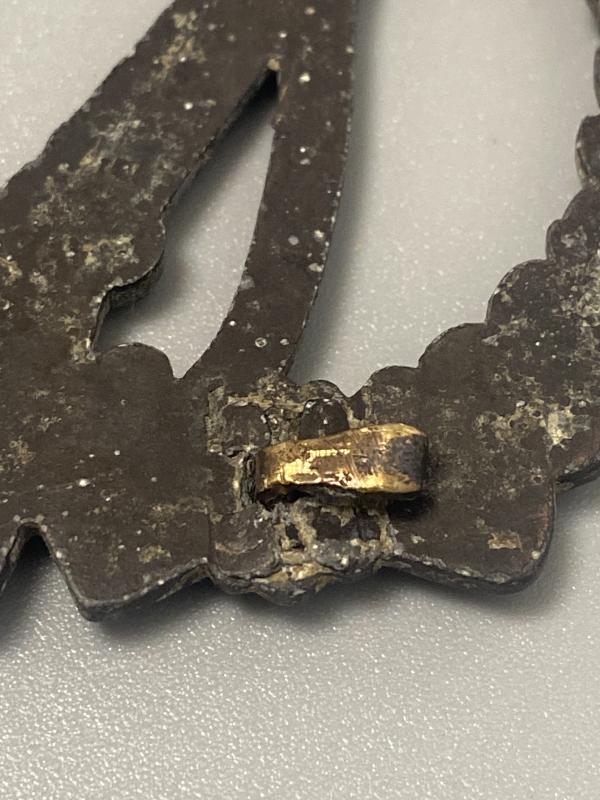 Original ground dug JFS manufactured Infantry Assault Badge. In reasonably good shape, no pin on the reverse. Hook remains in place.