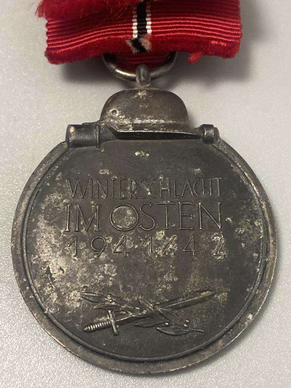 Original German Eastern Front Campaign medal. Unmarked variant with original length of ribbon.