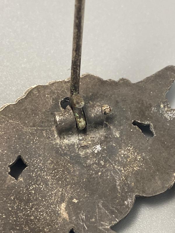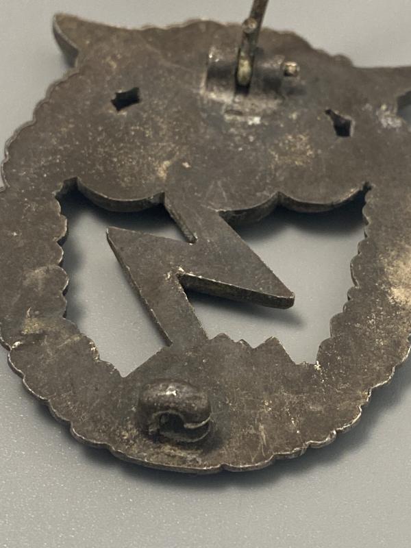 Original Luftwaffe Ground Assault Badge manufactured by Arno Wallpach. Late war type made of zinc, no makers mark present on the reverse. A nice badge.