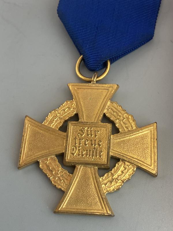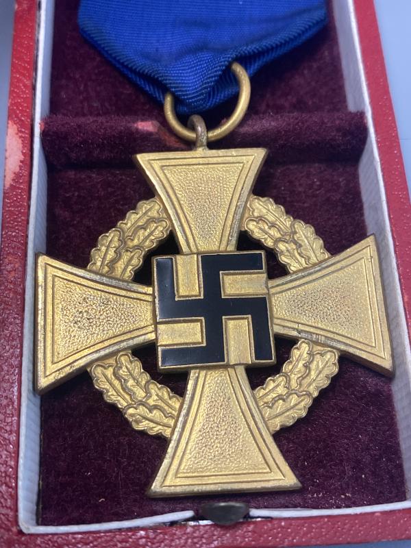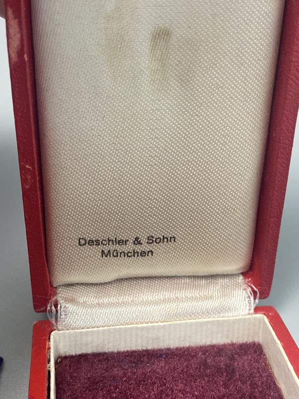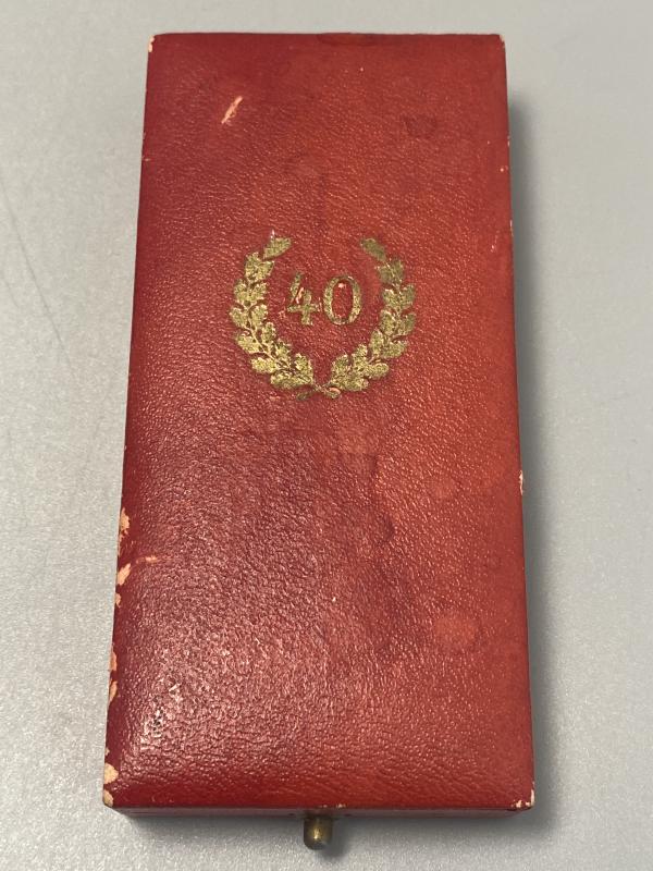 Original Third Reich 40 year service medal complete with box of issue. Made by Deschler & Sohn. Award in good condition with high enamel finish. Some wear to the outside of the box.