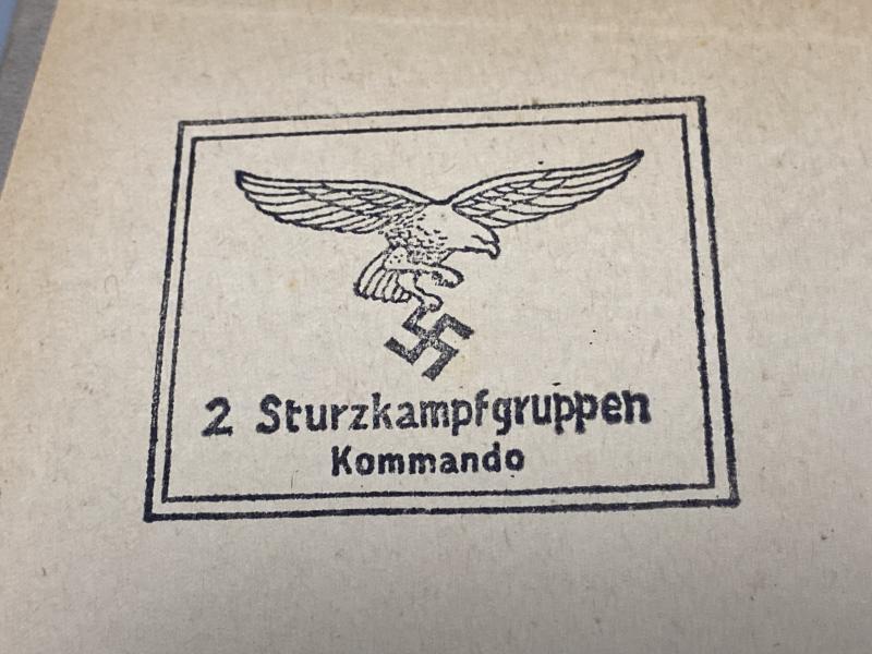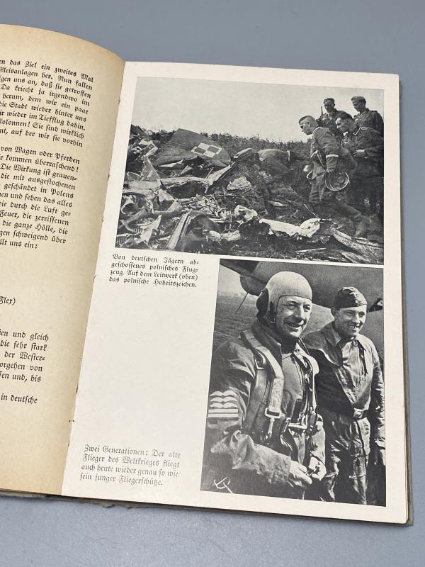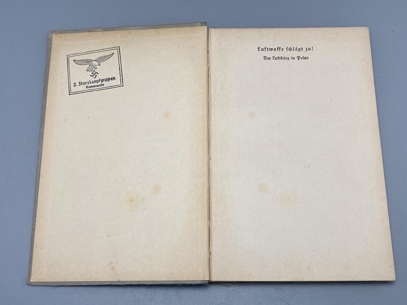 Original 1939 print of “Luftwaffe Schlägt Zu” which covers the German airforce battles over Poland. Book was previously the property of 2. Sturzkampfgruppen Kommando.
