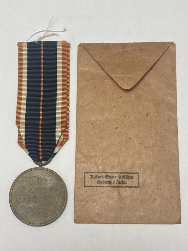 Original unissued German Merit Medal with packet manufactured by Richard Simm & Sohne. Early example with orange ribbon.
