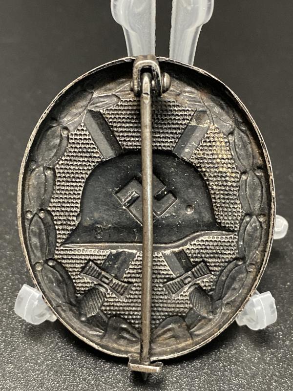 Original third grade black wound badge produced by Overhoff. Some wear to the highest parts of the award.