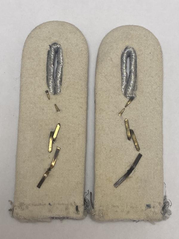 Original matching pair of shoulder boards for an Infantry Officer with the rank of Captain in the 5th Infantry Regiment. Waffenrock parade uniform type with shiny wire.