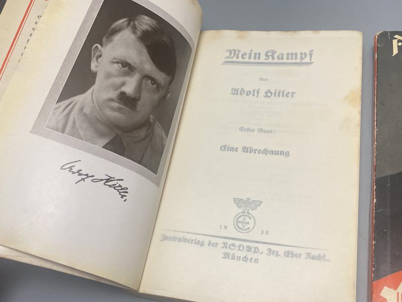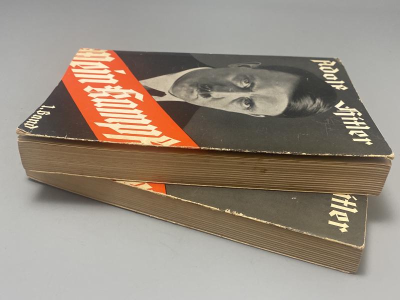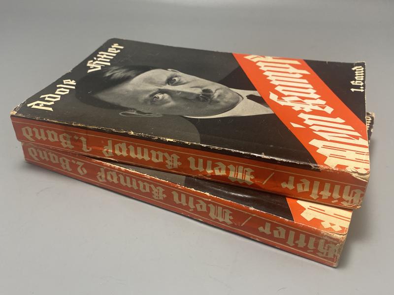 Original pair of Adolf Hitlers Mein Kampf Band 1 and 2. Both books printed 1938 and complete with dust covers. Some minor scuffing however nothing major. Both are paperback types.