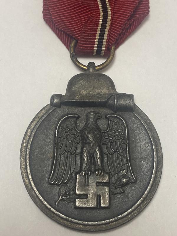 Original Eastern Front campaign medal of 1941/42 maker marked “88” Werner Redo. The Redo factory produced a small number of Ostmedaille and there examples are rarely seen. Award comes complete with ribbon.