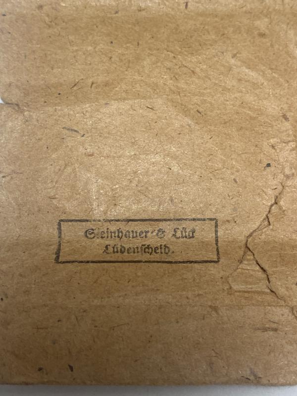 Original KVK2 award with packet produced by Steinhauer & Luck. Award made of Tombak with no makers mark. Packet stamped to the reverse with the factory name.