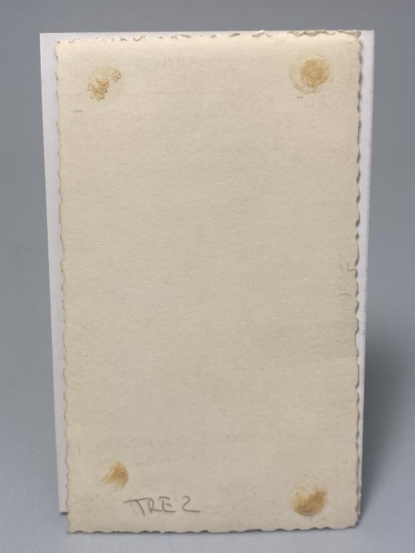 Original Army Oberfeldwebel studio portrait with the soldier pictured wearing several awards. Photo approx 87mm X 52mm.