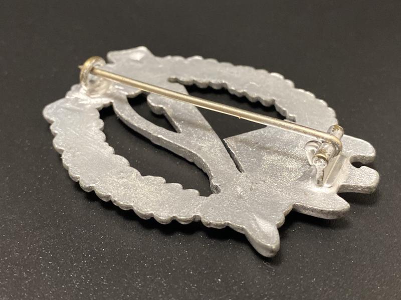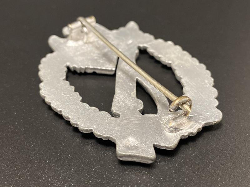 Original Silver Infantry Assault badge attributed to Sohni Heubach & Co. Award is a late war design, with high silver finish. A nice eye catching badge.
