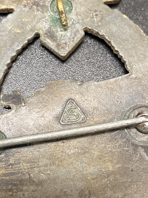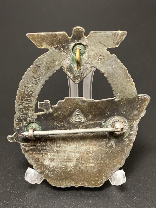 Original late war zinc Adolf Sholze made E-Boat/ Torpedo boat badge. Award in good shape, refinished with a replacement pin. Hook and hinge correct for the maker. A cheap gap filler compared to completely untouched variants of this badge.