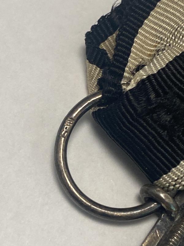 Original WW1 German Iron cross second class maker marked SW for S.Wagner of Berlin. Award complete with ribbon.