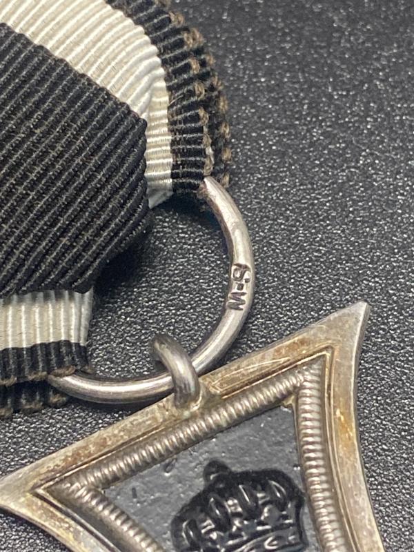 Original Iron Cross Second class made by S. Wagner with “SW” marked on the ring. Award in good condition with good length of original ribbon.