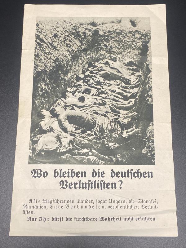 Original WW2 British air drop leaflet in German. A few creases however no rips.