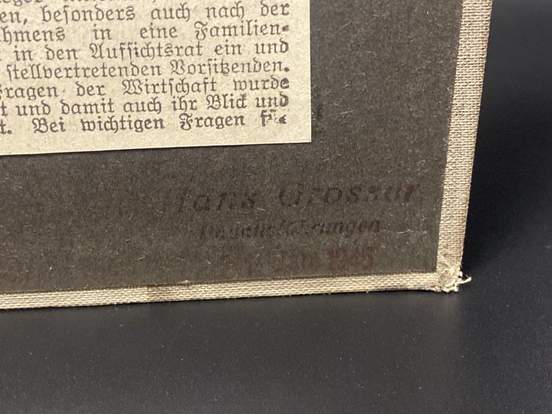 Original third Reich period Reichsmarine Kriegsmarine photo album with an assorted collection of naval photographs, including studio portraits, group photos and a nice picture of the Robert Ley ship. The serviceman's trade patch is present on the first page. A faint stamp on the back of the album indicates the album was made in January 1945. A nice item with 27 photos in total.