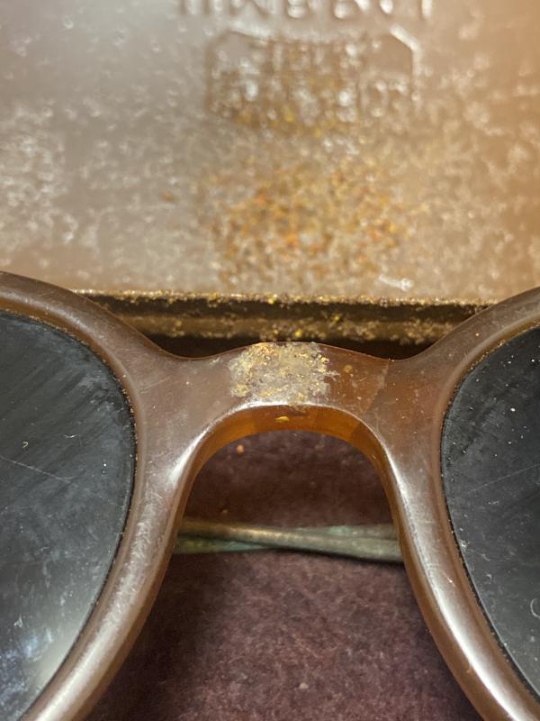 Original German army Carl Zeiss Umbral sunglasses or gunners glasses made of Bakerlite with 99/90 affixed lenses with wire rim earpieces. Complete with original metal case a scuff is present on the bridge of the glasses however apart from this in good shape.