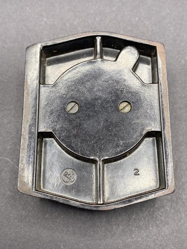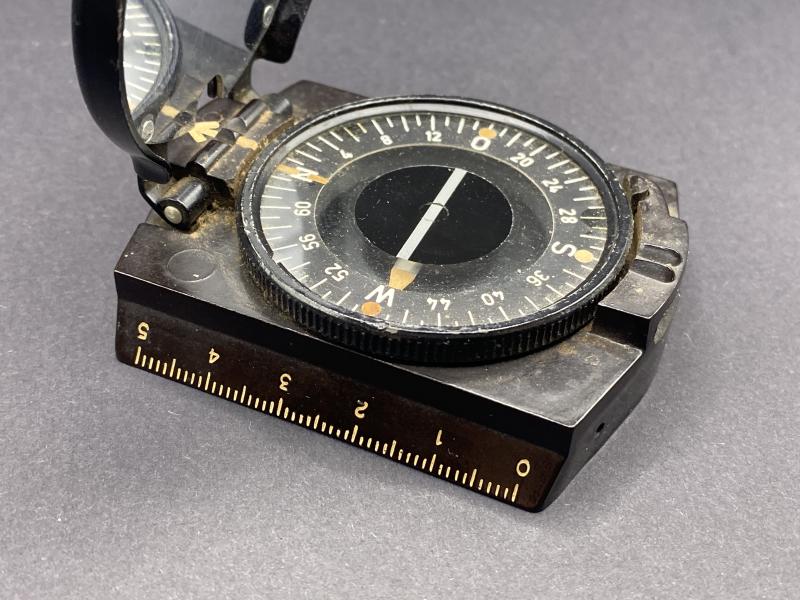 Nice original German army marching compass. In very good working condition. Bakerlite with metal flip up cover. Marked on the underside.