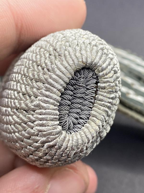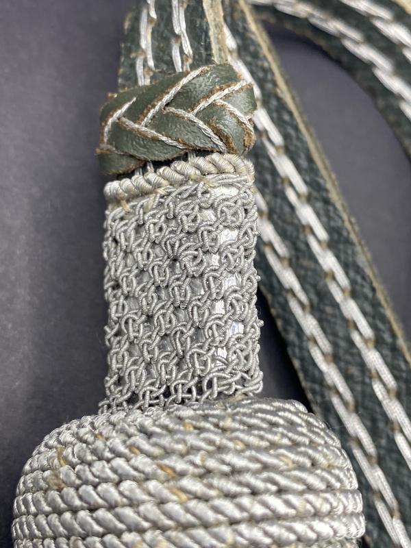 Original Sword knot for the Third Reich period German officers sword. Grey leather strap with silver wire embroidery. In mint unissued condition.