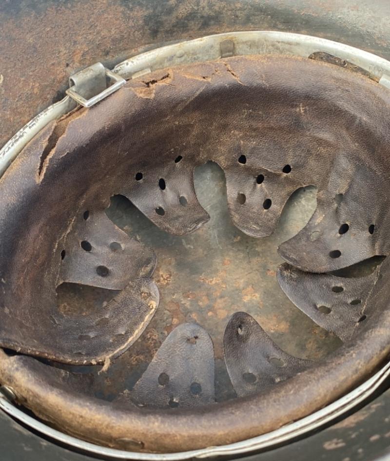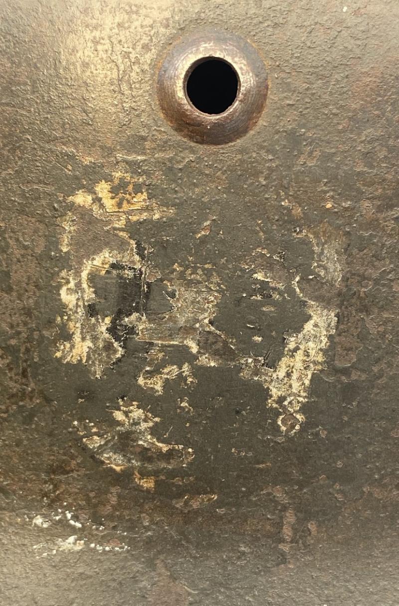 Original early Waffen SS double decal M35 apple green helmet complete with liner. Helmet batch number (2922) & Q64 codes both confirming that the Helmet was an SS DD lid in the Brian Ice book. A really nice untouched helmet direct from an overseas collection, never before available for sale. This lid does show clear evidence of wear. A lot of the original apple green paint is present. Approx 40% of the National decal and 25% Waffen SS decal. Some remains of the black in the ruines can still be seen however this has been quite hard to photograph. Liner is well worn inside with aluminium liner band, however untouched and as found.