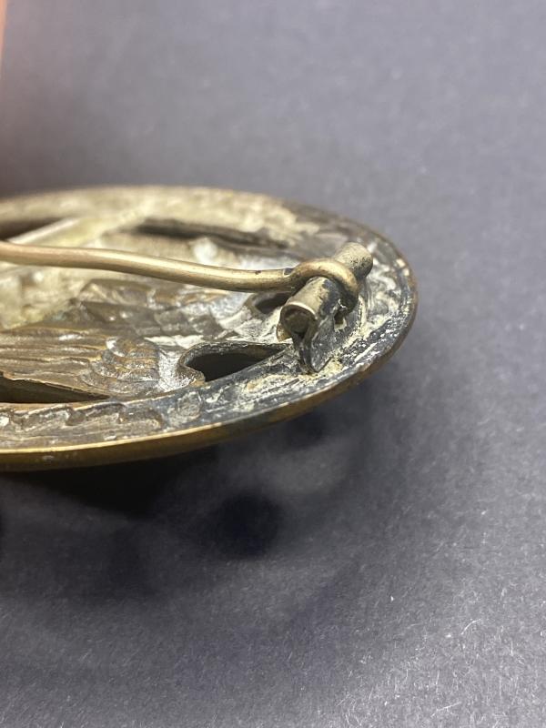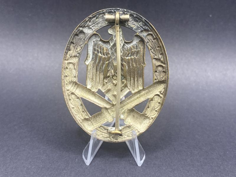 Original rare Otto Schickle made General assault badge produced out of Tombak. A very high quality early production badge, complete with factory assembled hardware on the reverse. Quite a bit of the silver finish is absent, however this doesn’t detract the difficulty of obtaining this type of award.