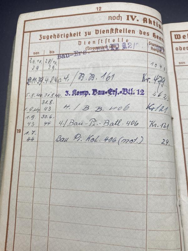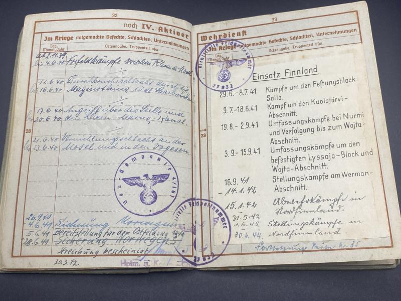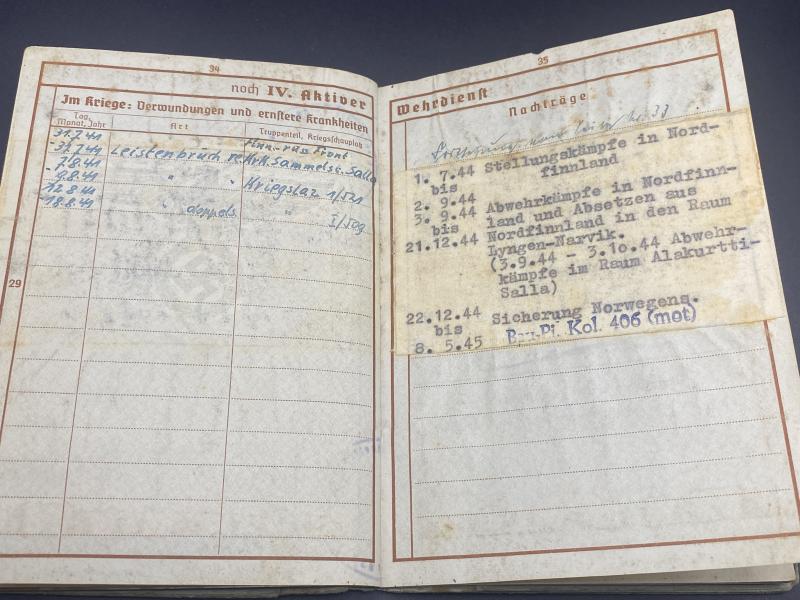 German Army Wehrpass Stabsgefreiter Albert Hauser Bau.Btl.406 Finnish-Soviet Front Lappland Shield Recipient