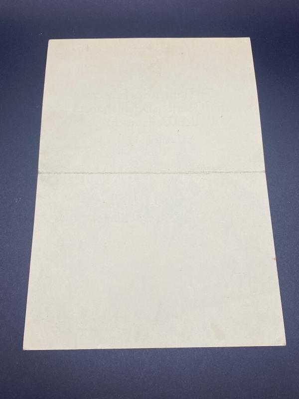 Original Citation for the Iron Cross first class issued to Oberwachtmeister Otto Brüning of Le Artillery Abteilung 860. Issued on the eastern front November 1943. Signed by the Major General of 292ID. Nice price with single crease mark down the middle where it was stored.
