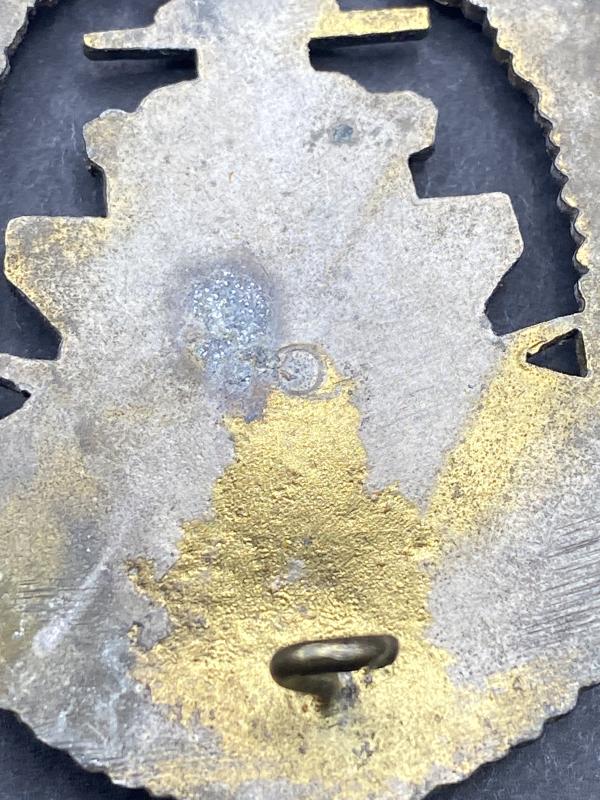 Original F.O. Marked German Navy High Seas badge. Zinc variant with factory assembled hardware on the reverse. Some finish fading and a bit of zinc pest on the reverse. This is reflected in the price.
