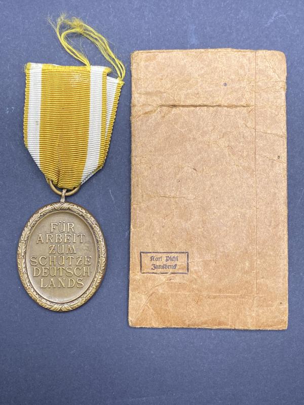 Original early brass Westwall medal complete with packet. A nice desirable maker for these awards.