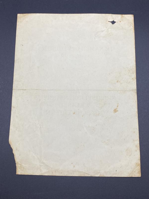 Original Citation for the KVK2 issued to combat medic Feldwebel Karl Breitfort. Issued 30th Jan 1944. The unit was attached to the 16th Mechanised infantry division also known as “Windhund”. A bit of damage to the citation however a nice original piece to a notorious division.