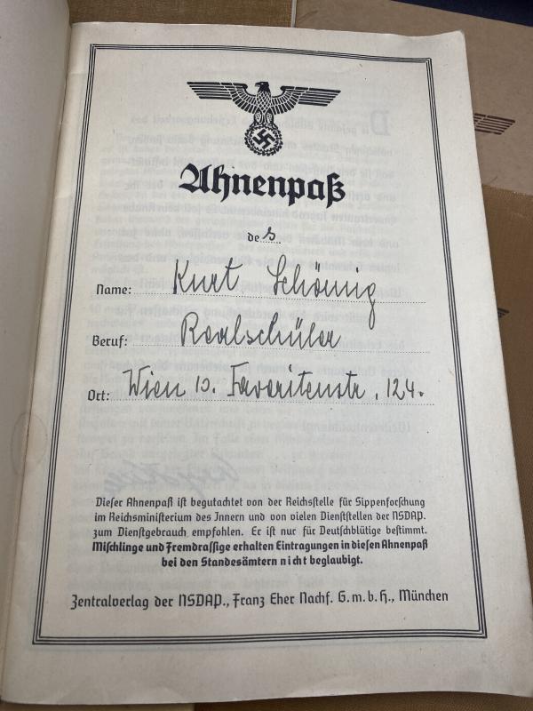 Third Reich “Racial Purity” Booklet Ahnenpass