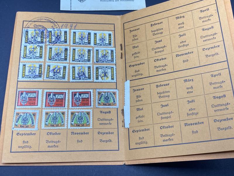 Original Third Reich NSKOV (Military Veterans Association) members book with entries 1937-1941.