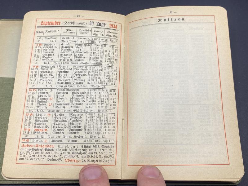 Original 1933-34 German Army issue calendar. In unissued condition.