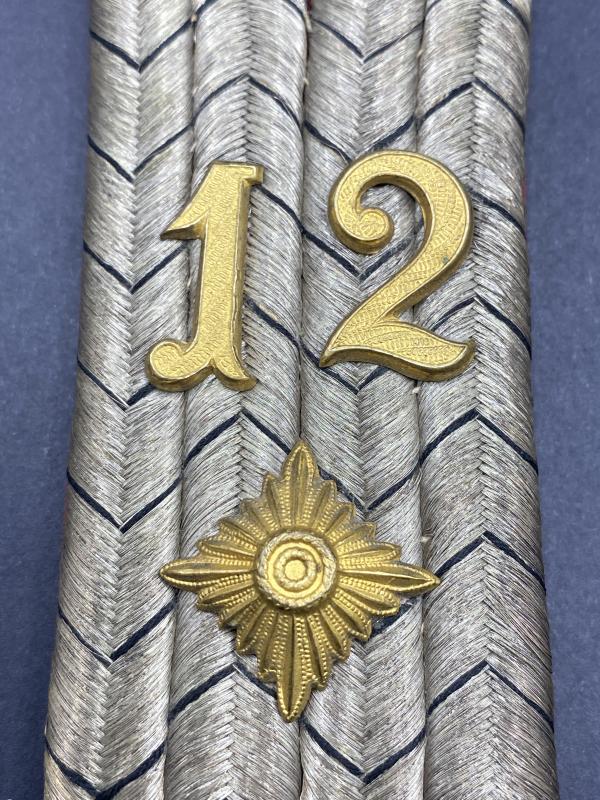 Original shoulder board for a First War Oberleutnant serving in the 12th Artillery Regiment. In good condition.
