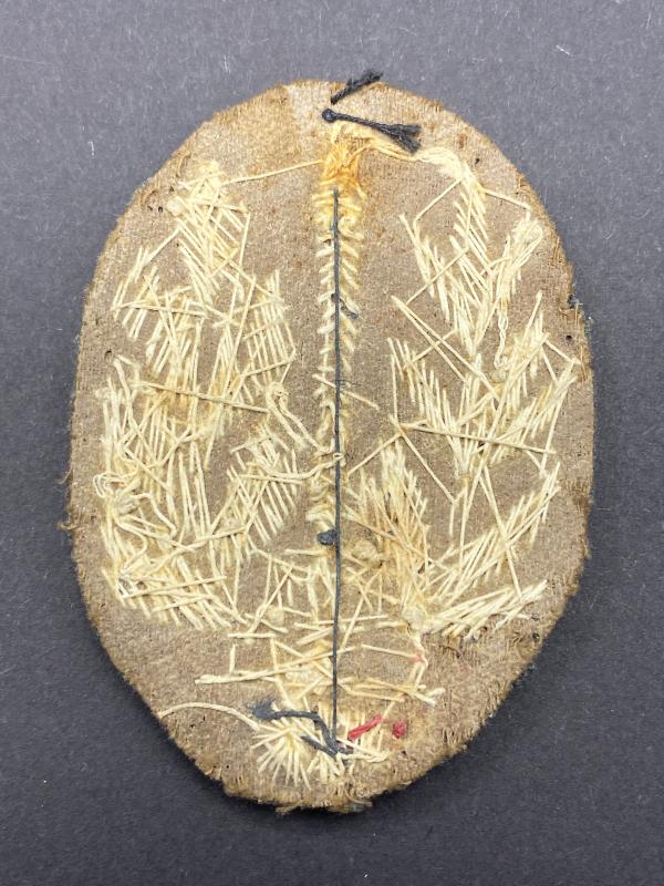 Original uniform removed fascist Italian FERT stormtroopers sleeve patch made of bullion wire with grey wool backing. Scarce patch.