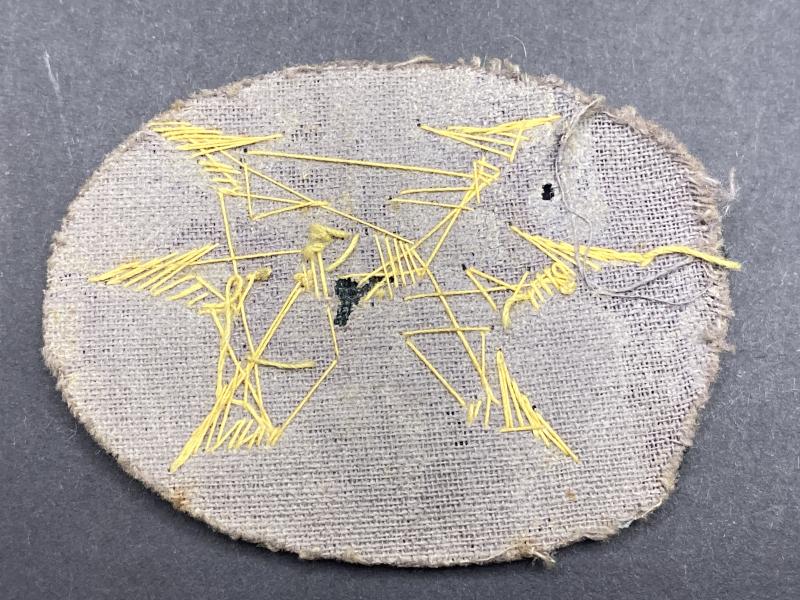 Original uniform removed Italian Radio operators sleeve insignia. Gold wire on grey wool.