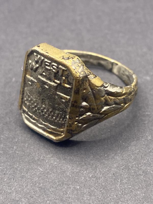 Original German Westwall ring. Nice well worn item. Neatly repaired where it was once snipped off of a finger. Reasonably large size.