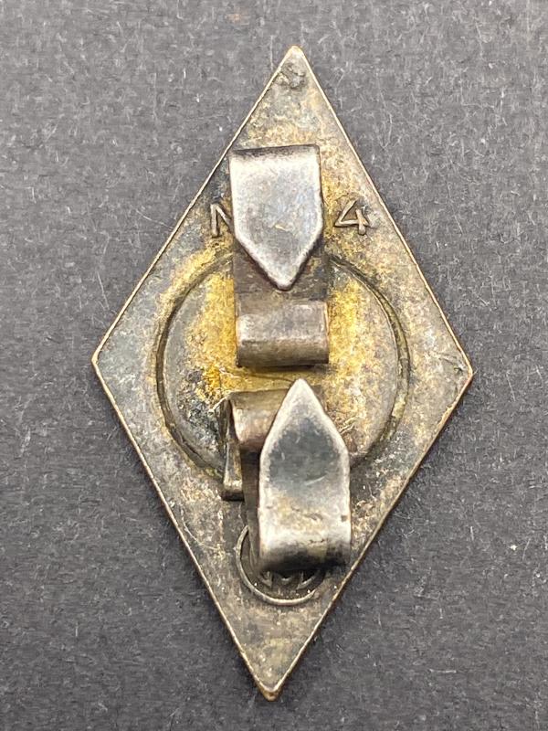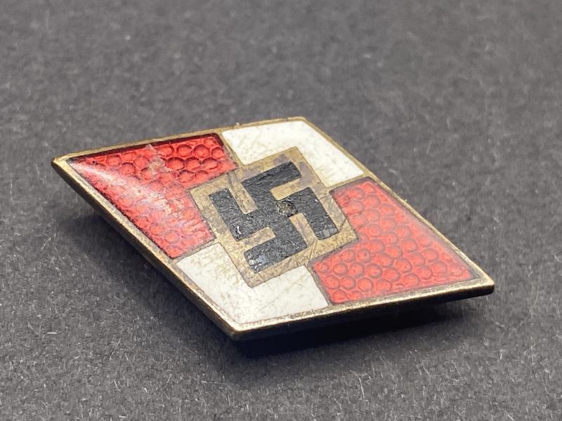 Original and sought after replacement diamond for the HJ dagger complete with both of its pins. A tiny little chip in the black of the swastika. Maker marked on the reverse.