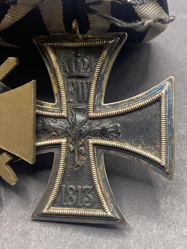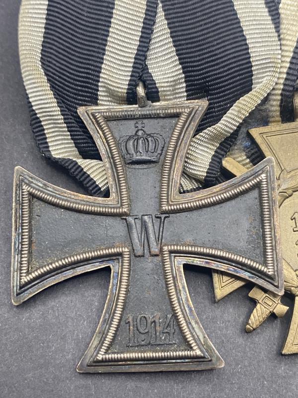 Original WW1 Iron Cross second class alongside Hindenburg cross and 18 year police service medal with reichadler bar. Complete with pin on the reverse. A nice medal bar in good condition.
