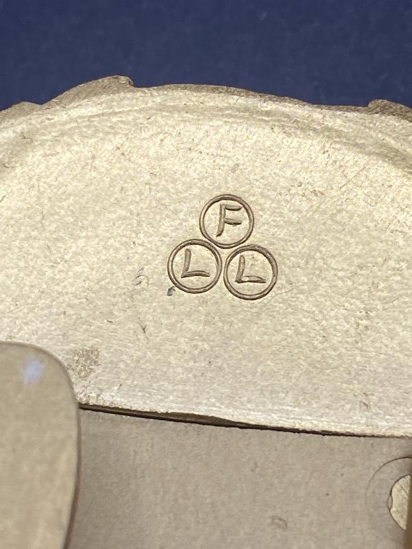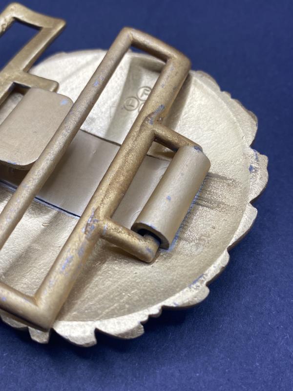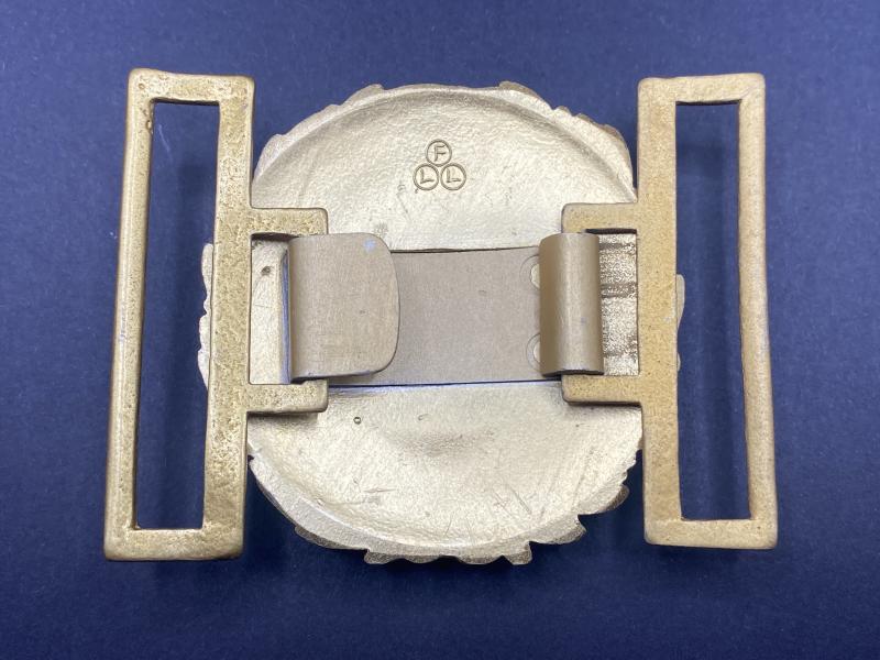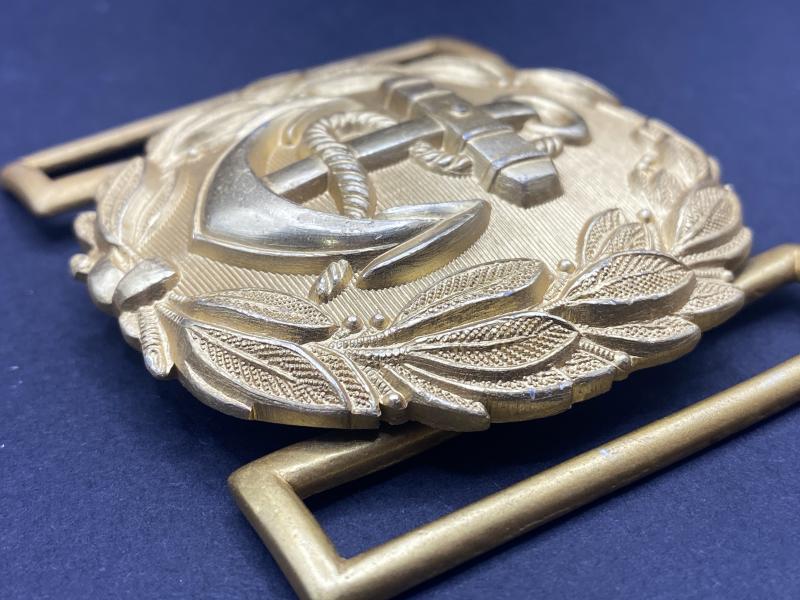 Original near mint gold guilt Kriegsmarine Officer brockade belt buckle. Maker marked FLL on the reverse for Friedrich Linden.